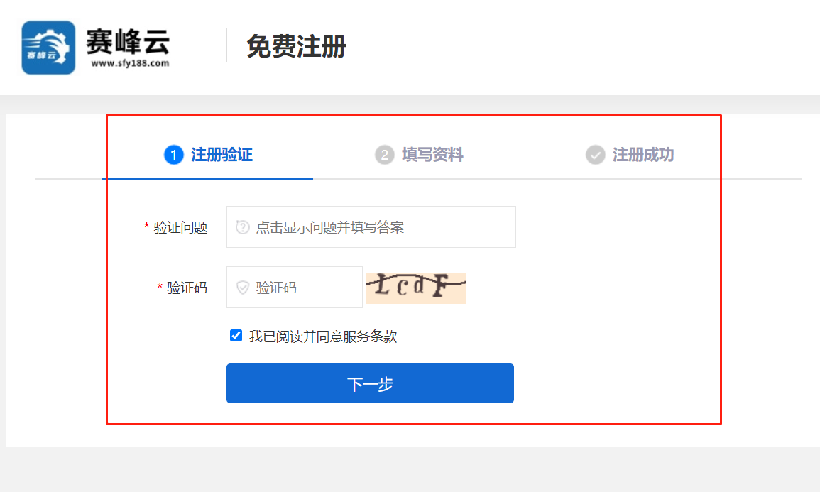 2.填寫驗(yàn)證問題,開始注冊(cè)