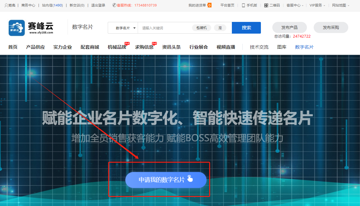 第二步:登陸成功之后選擇點(diǎn)擊“數(shù)字名片”