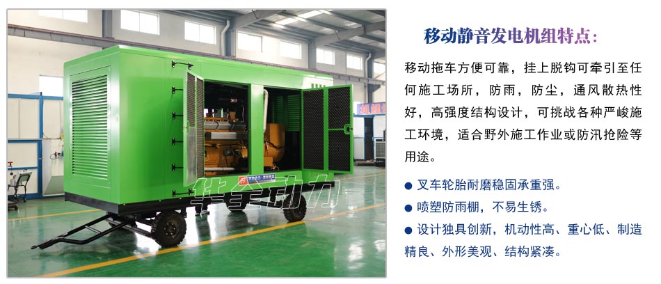 移動靜音發(fā)電機組特點: 移動拖車方便可靠,掛上脫鉤可牽引至任何施工場所,防雨,防塵,通風散熱性好,高強度結構設計,可挑戰(zhàn)各種嚴峻施工環(huán)境,適合野外施工作業(yè)或防汛搶險等用途。