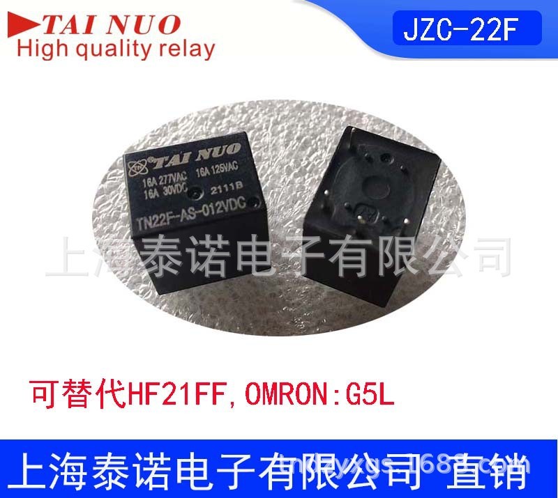 詳細信息 品牌TAI NUO 貨號TN22F 應用范圍電磁 額定電壓12VDC 是否專供外貿否 型號TN22F-AS 產品系列JZC-22F系列 額定電流16A/250VAC 3C額定電壓范圍36V以下 觸點形式1常開 觸點切換電流16A 線圈電源直流 最小包裝數100 觸點切換電壓250VAC 觸點負載4000VA