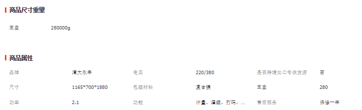 技術參數: 機器型號DXD-Y30Z制袋尺寸長: 80 - 200mm ; 寬: 80 - 150mm包裝速度15-30袋/分鐘電源和功率380V三相四線制 ,也可220V 50-60Hz , 2.1Kw整機重量280kg外型尺寸長1165×寬700×高1880(mm)灌裝范圍50-200 (g)額定氣壓:0.4-0.6MPa(4-6kg)灌裝精度: 1%-2%(根據不同物料)