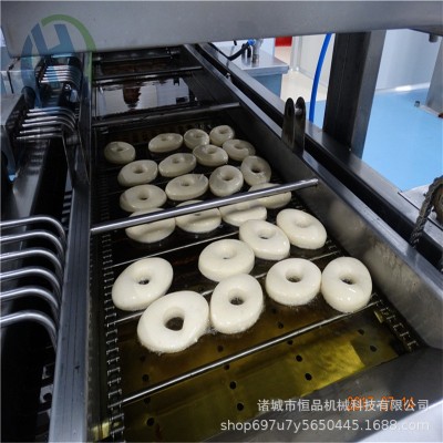連續式全自動甜甜圈油炸流水線設備 自動翻面貝果甜甜圈油炸機器