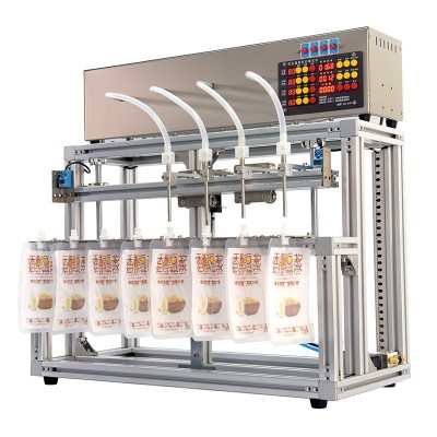 四頭升降自立吸嘴袋液體灌裝機飲料牛奶醋醬油豆漿中藥液定量分裝