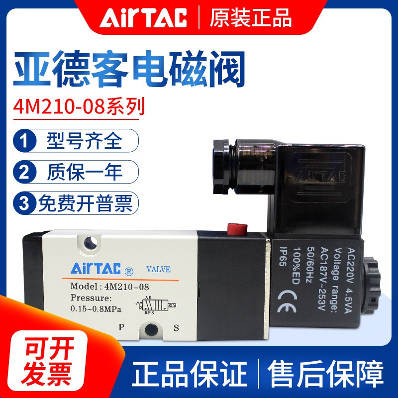 亞德客電磁閥4M110-06氣動電磁控制閥220v換向閥4M210-08氣閥24v