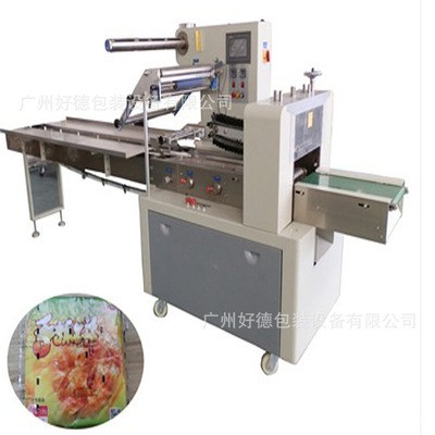 HD-350廣東枕式自動包裝機使用于蛋黃派、水果派、餅干、面包、月餅、糖果、藥品、日常用品、五金零件、紙盒或托 盤等各類固態生物體的包裝.