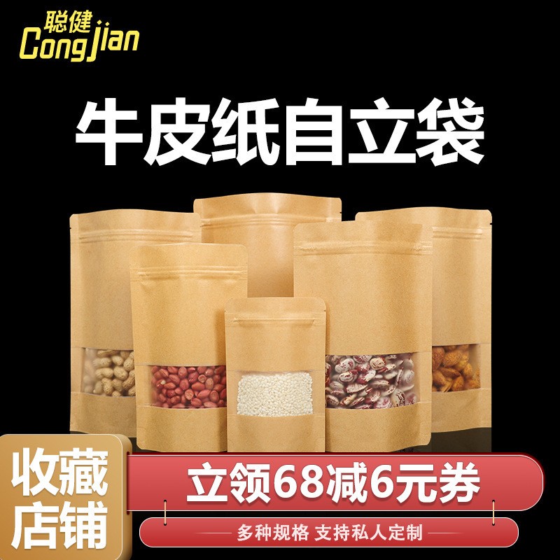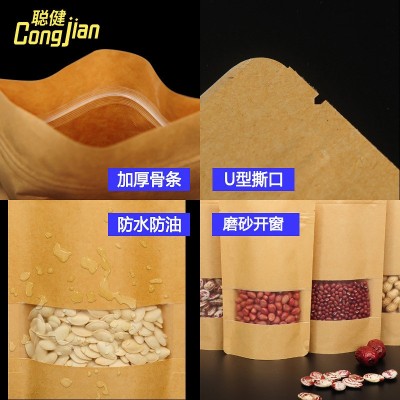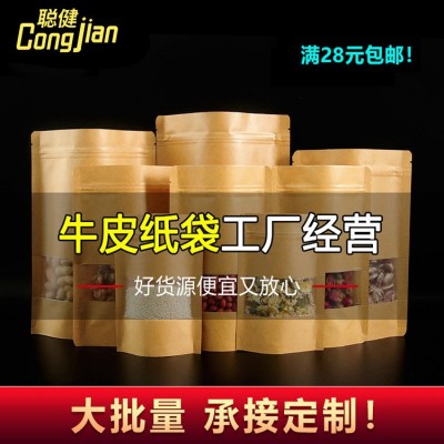 廠家批發開窗牛皮紙袋食品包裝茶葉袋瓜子紅棗密封口袋定制自封袋
