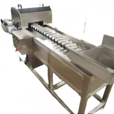 鮮玉米切頭去尾機(jī)工作原理: 采用SS304 不銹鋼材質(zhì)制成,符合國(guó)際出口標(biāo)準(zhǔn),耐腐蝕耐酸性強(qiáng),堅(jiān)固耐用,使用壽命長(zhǎng)。王米切段機(jī)的機(jī)架上的切割長(zhǎng)度可以根據(jù)要求調(diào)節(jié)長(zhǎng)短,可以分兩段或幾段。此王米切段機(jī)喂入變速機(jī)構(gòu)采用齒輪傳動(dòng)和皮帶傳動(dòng)相結(jié)合的方法,并且所有傳動(dòng)部分全部安裝滾動(dòng)軸承。具有噪音小,使用壽命長(zhǎng)等特點(diǎn)。鮮王米切頭去尾機(jī)工作原理及產(chǎn)量,設(shè)備可以一個(gè)人擺放或多人擺放都行,節(jié)省運(yùn)行成本,增加生產(chǎn)能力。傳動(dòng)為連續(xù)式傳動(dòng),可選間式可加載變頻系統(tǒng),可根據(jù)要求配置輸送帶。